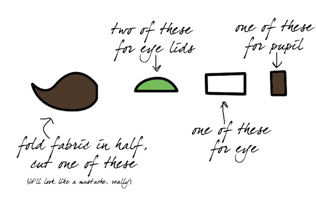 This guy was super easy to make, I didn't even use a pattern. I just sort of winged it. A monster shouldn't be perfectly symmetrical anyways! Here's what I did: